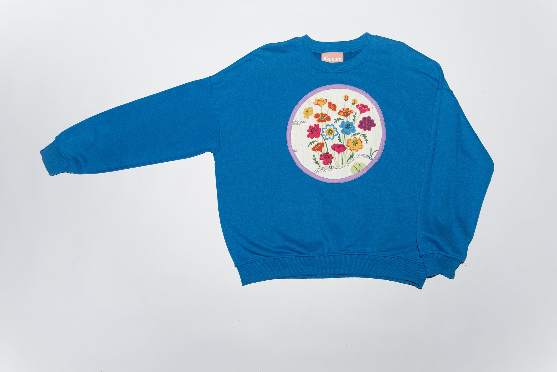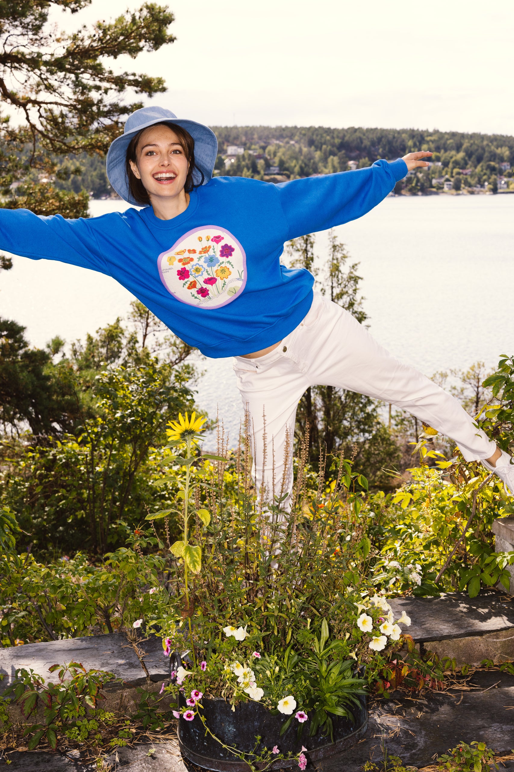 In bright blue that marries beautifully with Josef Frank’s California fabric, this sweatshirt feels like Swedish summer. It has a classic leisurely fit with long sleeves and a lilac border at front as the final finish.